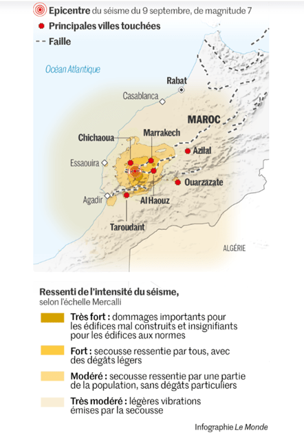 Fig.1 Epicentres du séisme du 9 septembre au Maroc
